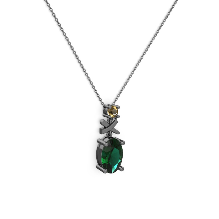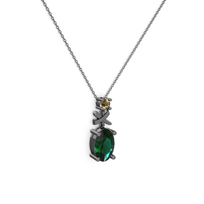 Yeşil kuvars ve dumanlı kuvars 925 ayar siyah rodyum kaplama gümüş kolye (40 cm gümüş rolo zincir)