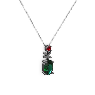 Yeşil kuvars ve garnet 925 ayar siyah rodyum kaplama gümüş kolye (40 cm beyaz altın rolo zincir)