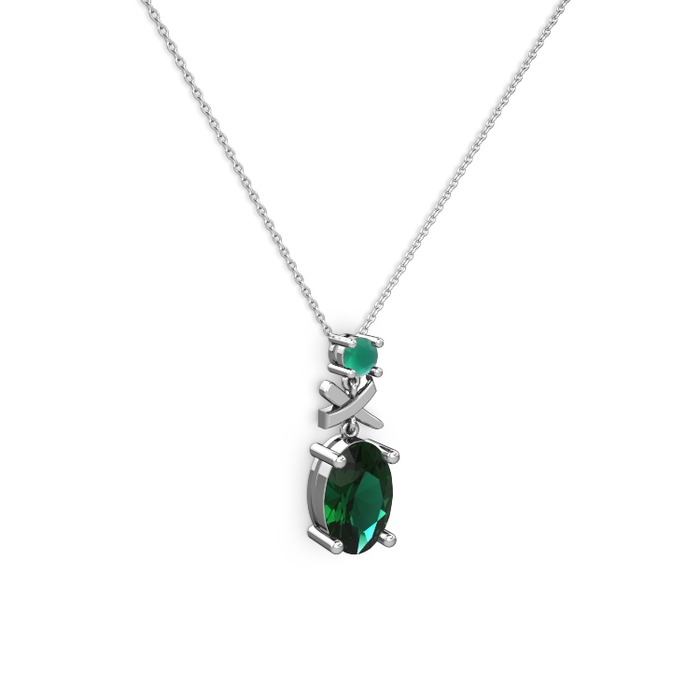 Yeşil kuvars ve kök zümrüt 8 ayar beyaz altın kolye (40 cm gümüş rolo zincir)