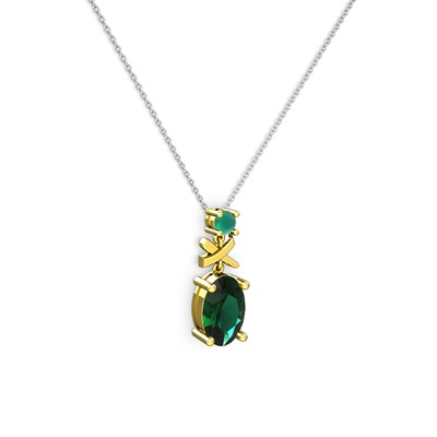 Yeşil kuvars ve kök zümrüt 925 ayar altın kaplama gümüş kolye (40 cm beyaz altın rolo zincir)