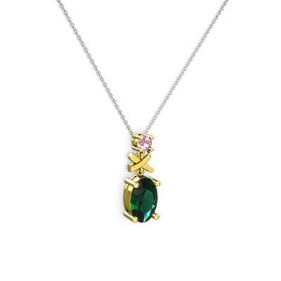 Yeşil kuvars ve pembe kuvars 8 ayar altın kolye (40 cm gümüş rolo zincir)
