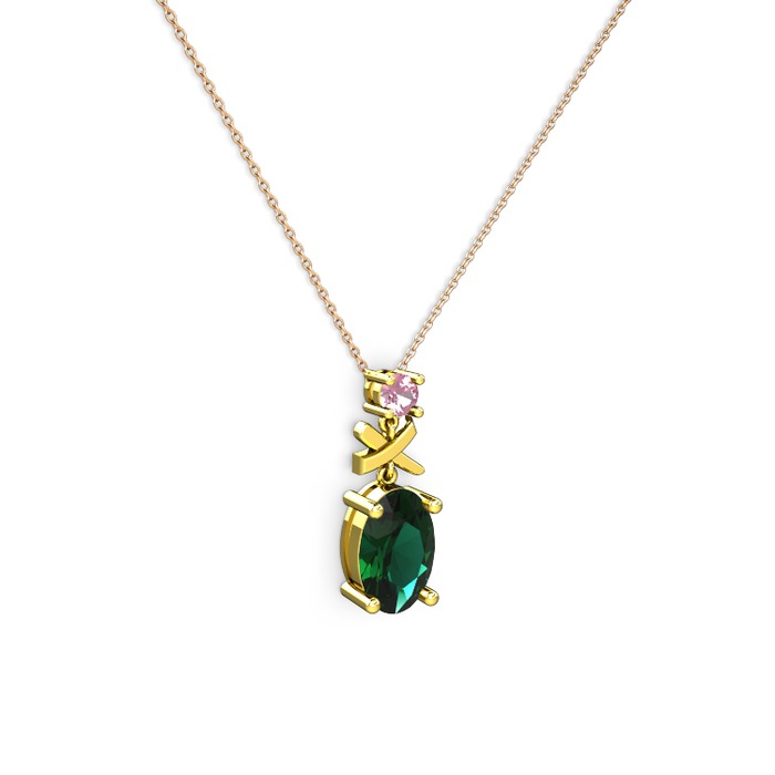Yeşil kuvars ve pembe kuvars 8 ayar altın kolye (40 cm rose altın rolo zincir)