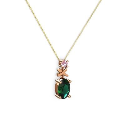 Yeşil kuvars ve pembe kuvars 925 ayar rose altın kaplama gümüş kolye (40 cm altın rolo zincir)