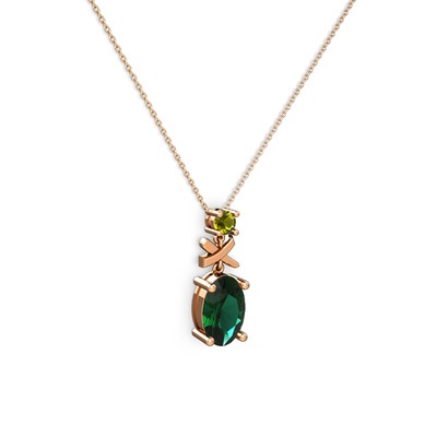 Yeşil kuvars ve peridot 8 ayar rose altın kolye (40 cm gümüş rolo zincir)