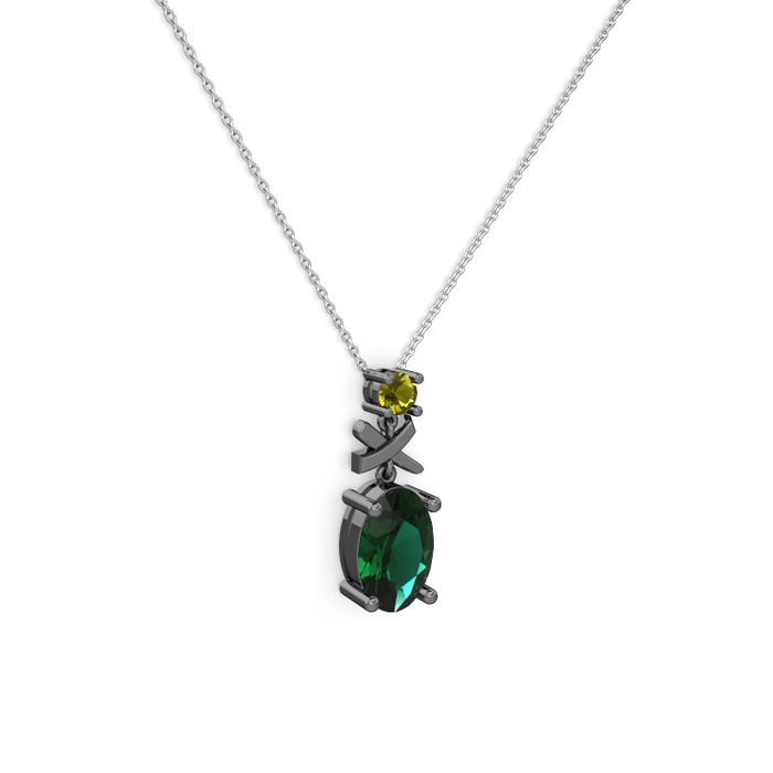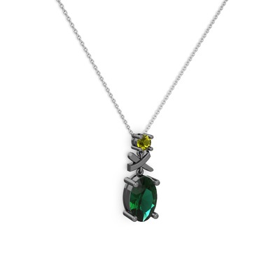 Yeşil kuvars ve peridot 925 ayar siyah rodyum kaplama gümüş kolye (40 cm beyaz altın rolo zincir)