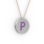 Ametist 14 ayar beyaz altın kolye (40 cm rose altın rolo zincir)