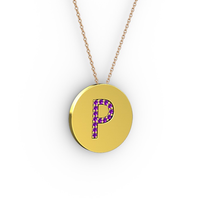 Ametist 18 ayar altın kolye (40 cm gümüş rolo zincir)
