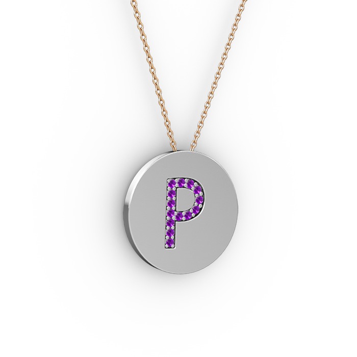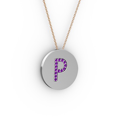 Ametist 18 ayar beyaz altın kolye (40 cm rose altın rolo zincir)