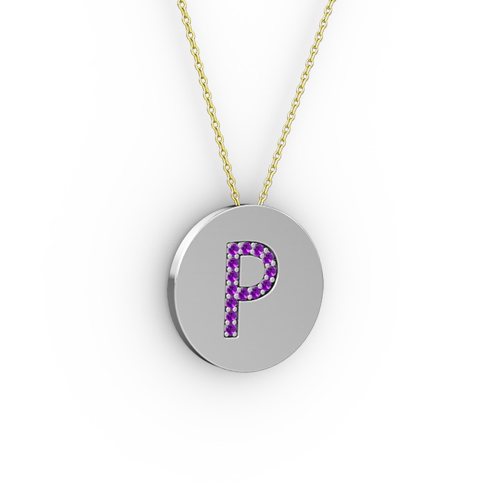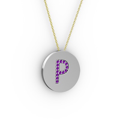 Ametist 925 ayar gümüş kolye (40 cm altın rolo zincir)