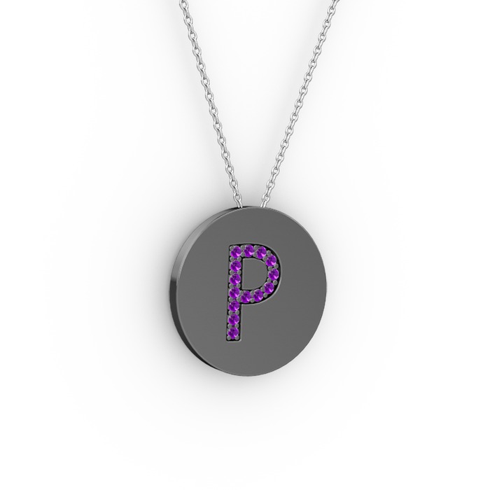 Ametist 925 ayar siyah rodyum kaplama gümüş kolye (40 cm gümüş rolo zincir)