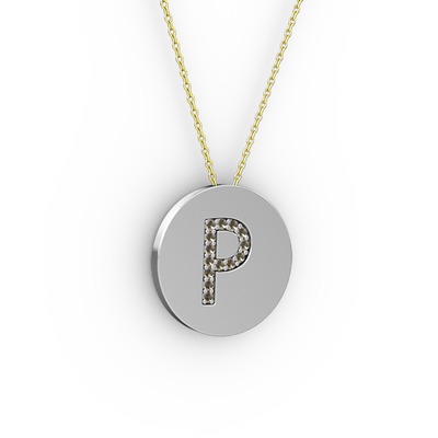 Dumanlı kuvars 8 ayar beyaz altın kolye (40 cm altın rolo zincir)