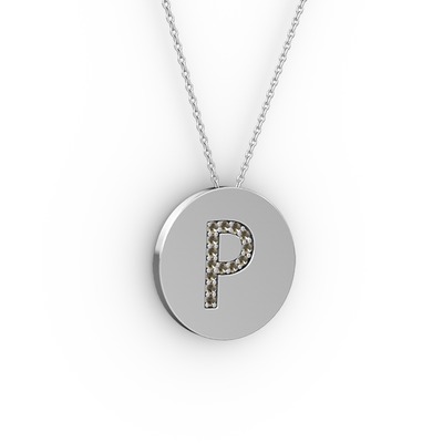 Dumanlı kuvars 8 ayar beyaz altın kolye (40 cm beyaz altın rolo zincir)