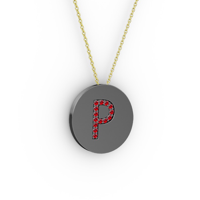Garnet 925 ayar siyah rodyum kaplama gümüş kolye (40 cm altın rolo zincir)