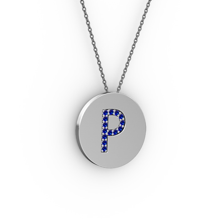 Lab safir 14 ayar beyaz altın kolye (40 cm gümüş rolo zincir)