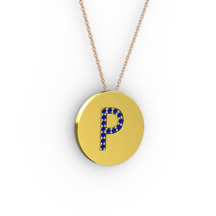 Lab safir 18 ayar altın kolye (40 cm rose altın rolo zincir)