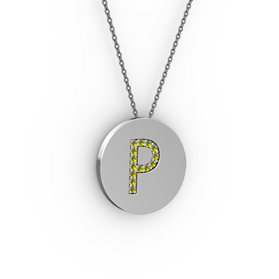 Peridot 14 ayar beyaz altın kolye (40 cm gümüş rolo zincir)