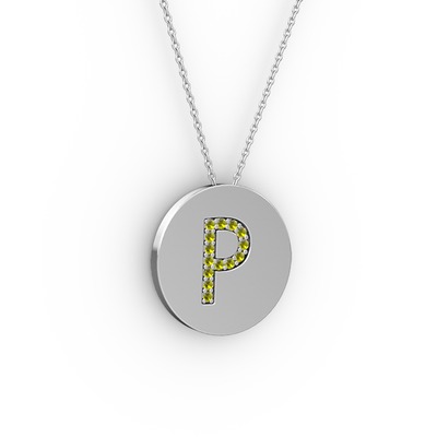 P Baş Harf Kolye - Peridot 18 ayar beyaz altın kolye (40 cm gümüş rolo zincir)