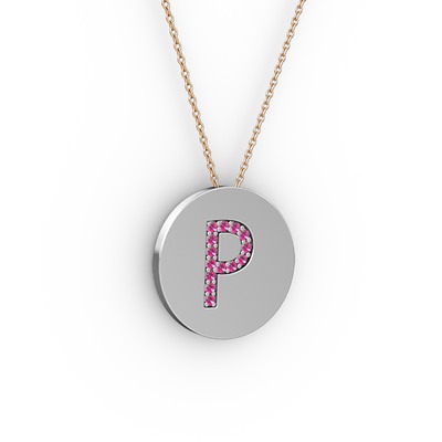 Rodolit garnet 18 ayar beyaz altın kolye (40 cm rose altın rolo zincir)