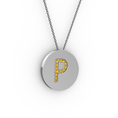 Sitrin 18 ayar beyaz altın kolye (40 cm gümüş rolo zincir)