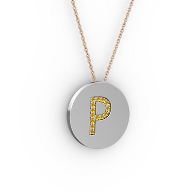 Sitrin 18 ayar beyaz altın kolye (40 cm rose altın rolo zincir)
