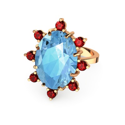 Akuamarin ve garnet 14 ayar rose altın yüzük