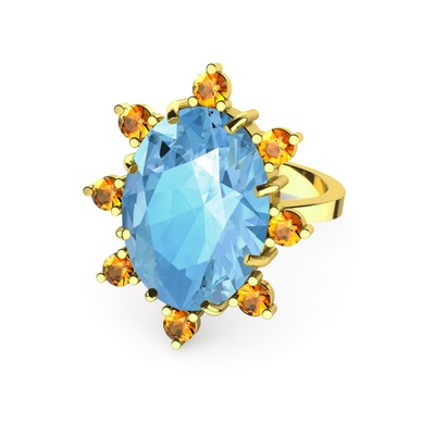 Akuamarin ve sitrin 14 ayar altın yüzük