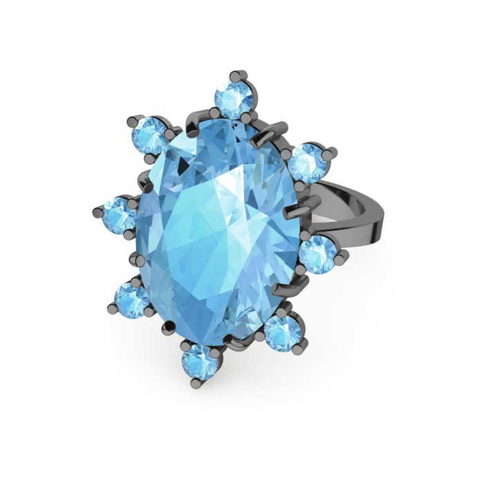 Akuamarin 925 ayar siyah rodyum kaplama gümüş yüzük