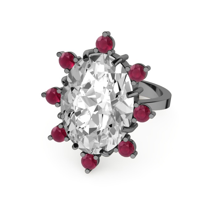 Beyaz zirkon ve kök yakut 925 ayar siyah rodyum kaplama gümüş yüzük