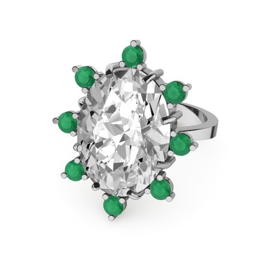 Beyaz zirkon ve kök zümrüt 14 ayar beyaz altın yüzük