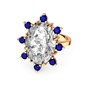 Beyaz zirkon ve lab safir 14 ayar rose altın yüzük