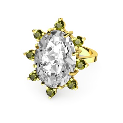 Beyaz zirkon ve peridot 14 ayar altın yüzük