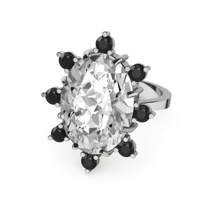 Beyaz zirkon ve siyah zirkon 925 ayar gümüş yüzük