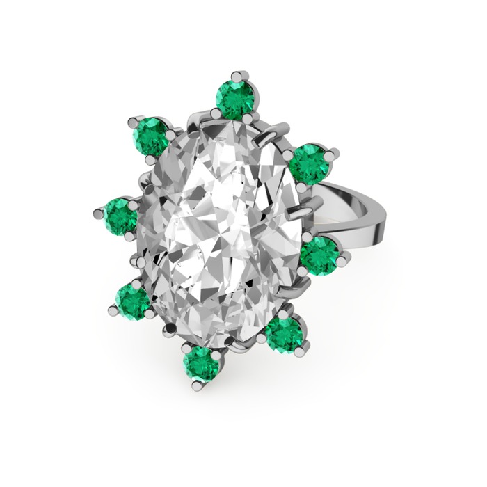 Beyaz zirkon ve yeşil kuvars 14 ayar beyaz altın yüzük