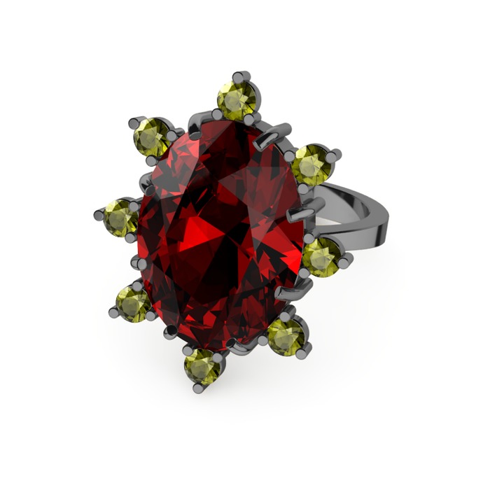 Garnet ve peridot 925 ayar siyah rodyum kaplama gümüş yüzük