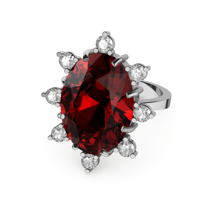 Garnet ve pırlanta 925 ayar gümüş yüzük (0.88 karat)