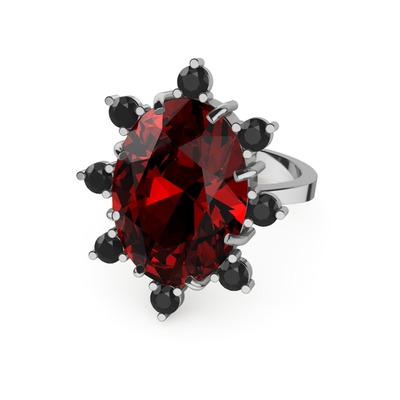 Garnet ve siyah zirkon 8 ayar beyaz altın yüzük