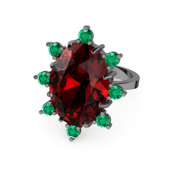 Garnet ve yeşil kuvars 925 ayar siyah rodyum kaplama gümüş yüzük