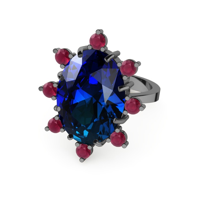 Lab safir ve kök yakut 925 ayar siyah rodyum kaplama gümüş yüzük