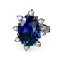 Lab safir ve pırlanta 925 ayar siyah rodyum kaplama gümüş yüzük (0.88 karat)