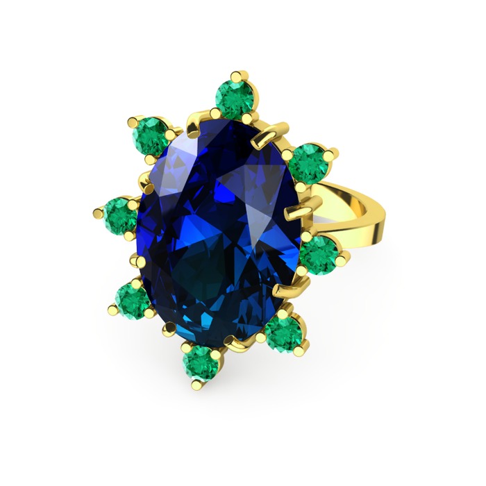 Lab safir ve yeşil kuvars 18 ayar altın yüzük