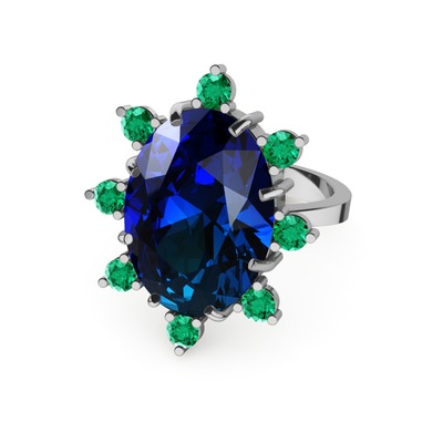 Lab safir ve yeşil kuvars 8 ayar beyaz altın yüzük