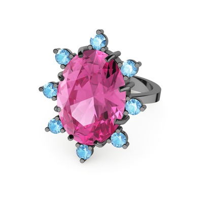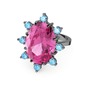Pembe kuvars ve akuamarin 925 ayar siyah rodyum kaplama gümüş yüzük