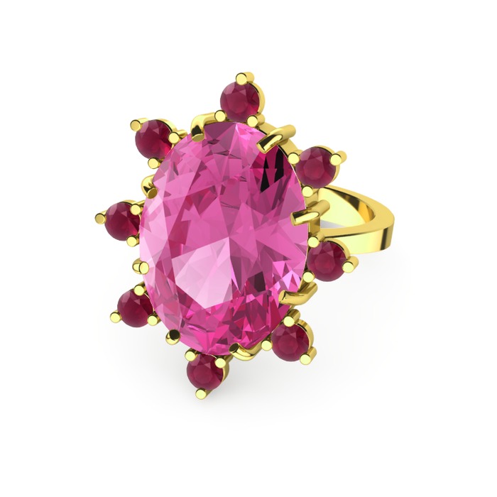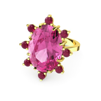 Pembe kuvars ve kök yakut 18 ayar altın yüzük