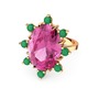 Pembe kuvars ve kök zümrüt 8 ayar rose altın yüzük