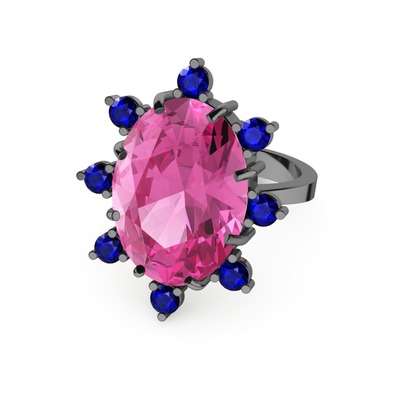 Pembe kuvars ve lab safir 925 ayar siyah rodyum kaplama gümüş yüzük