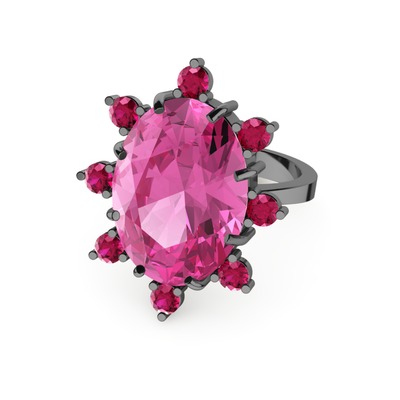 Pembe kuvars ve rodolit garnet 925 ayar siyah rodyum kaplama gümüş yüzük
