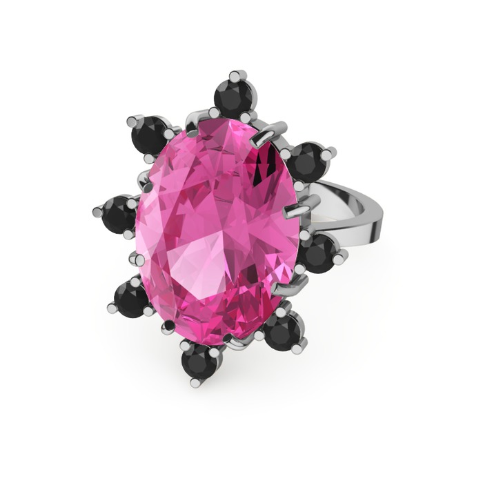 Pembe kuvars ve siyah zirkon 14 ayar beyaz altın yüzük