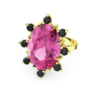 Pembe kuvars ve siyah zirkon 8 ayar altın yüzük
