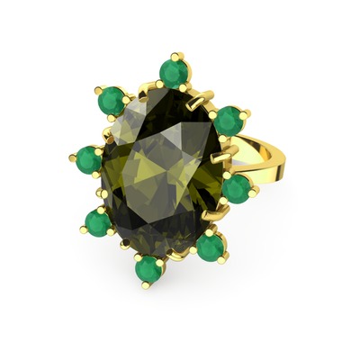 Peridot ve kök zümrüt 18 ayar altın yüzük