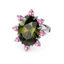 Peridot ve pembe kuvars 8 ayar beyaz altın yüzük